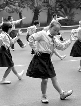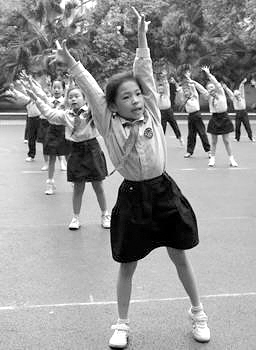 本报综合消息 模仿古代“请”、“让”、“孝”等系列动作,编制成一套极有古典韵味的体操!再配上《渔舟唱晚》的背景音乐,一边“做操”一边大声朗诵国学名篇或者名句……19日,记者获悉,成都市双眼井小学耗时数月,发明出了一套“国学操”,将体操和国学的诵读融二为一。据悉,这是目前全国第一套“国学操”。