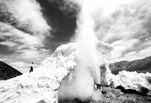这是4月20日拍摄的地热冰塔奇观。距拉萨150多公里的念青唐古拉山脚下一处地热喷泉,经过一个冬天的喷涌结冰,形成美丽的地热冰塔奇观,成为一大旅游景观。 新华社发