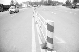 昨日,在市区七一东路的大拐弯处,交警部门在设立警示牌后,又根据特殊情况,在大拐弯处路中间安装护栏,以防止一些不守规矩的车辆因违章发生危险。晚报记者 朱海龙 摄