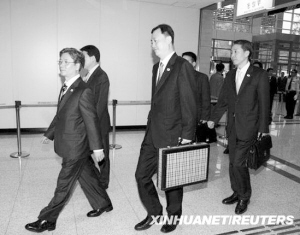 上图为韩国代表团前往朝鲜开城参加韩朝会晤。