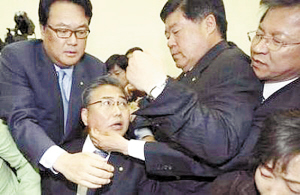 本报综合消息 在韩国议会外交通商统一委员会委员长22日批准美韩自由贸易协定后,执政党和反对党议员发生了肢体冲突。