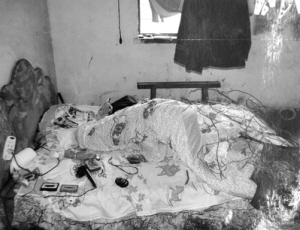 他从床头拿起一把匕首,威吓蓉蓉道:“你若不还那40元钱,我就杀了你。”蓉蓉见侯思义满脸杀气腾腾,心中十分恐惧,便大声呼喊“救命”。闻听蓉蓉大声喊叫,侯思义做贼心虚,心里也害怕起来。蓉蓉不断的喊叫声,成了侯思义产生杀人恶念的导火线。侯思义站在床头,按住蓉蓉的头,右手持匕首朝其脖子上连扎3刀,瞬间,地上、床上、墙壁上都溅满了血迹,蓉蓉当场死亡。