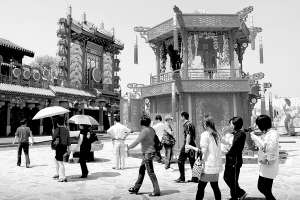 5月3日,游客在北京前门新开张的“刘老根大舞台”游览。5月3日起,“刘老根大舞台”北京剧场正式向普通观众售票。刘老根大舞台充满浓郁东北特色的建筑设计,吸引许多游客前来观光游览。 新华社发
