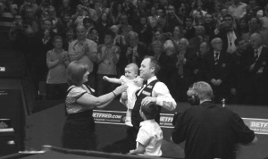 再过两周就迎来34岁生日之际,希金斯赢得高达25万英镑的冠军奖金最重要的是,自己的父母、妻子和三个孩子一起度过了这激动的一刻,其中刚10个月的女儿克洛伊还是第一次见证父亲的辉煌。“刚才夺冠时,看到我的妻子和3个儿女一齐拥过来的感觉真的好极了,那种幸福无法形容。”希金斯动情地说道。