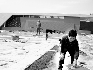 为纪念抗日民族英雄吉鸿昌将军诞辰114周年,连日来,施工人员奋战在吉鸿昌将军纪念馆建设工地上。吉鸿昌将军纪念馆的主体工程已于去年年底完工,目前正在进行内部装修和纪念馆广场地面花岗岩铺设,预计今年10月竣工。图为施工人员正在铺设纪念馆广场地面花岗岩。