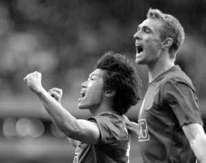 年轻的阿森纳球员为他们的失误付出了代价。开赛仅8分钟,19岁的后卫吉布斯,面对C罗纳尔多一脚传球,居然解围失误,让朴智星得球后破门得分。曼联老帅弗格森和他的助理教练在场边顿时又蹦又跳。