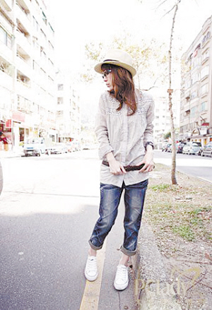 就是这么简简单单。没有繁琐的配饰,没有颜色的混搭,没有多余的饰品,却出奇地好看。简简单单,清新的气质扑面而来。微微卷起你的裤脚,再戴上一顶渔夫帽,简约中又多了一分帅气和个性。