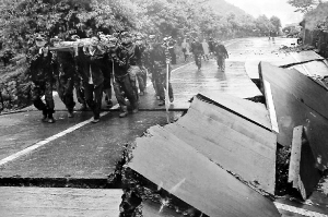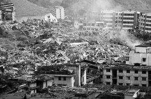 2008年5月12日14时28分,四川省汶川县映秀镇发生8.0级地震,中国除黑龙江、吉林、新疆外均有震感,陕甘川三省震情严重,震撼世界。刹那间,城市被夷为平地,楼房变成一片废墟,数万人失去生命,数十万人不同程度受伤,损失惨重。图为地震发生后四川重灾区景象。