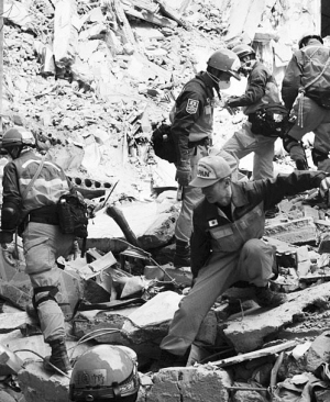 救援在震后第一时间迅速展开,子弟兵、消防员、医务工作者……千千万万的救援者齐心协力、争先恐后与时间赛跑,从死神手中抢夺生命。众志成城、永不放弃成了抗震救灾的最强音。(左图为周口消防官兵在救援现场。)