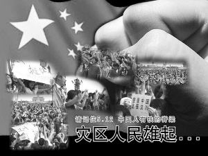 “全心全意为人民服务”,党的宗旨在这次大灾难中展现得淋漓尽致。救援中的快速行动、不惜一切,援建时的全力支持、以人为本无不彰显了党的执政理念。胡主席、温总理数赴灾区一线和受灾群众深情对话、给他们鼓气加油总让人心潮澎湃;中国历史上首次为平民设立哀悼日,降半旗、全国志哀更让全世界人民都看到,在中国共产党领导下,中国人所拥有的至高无上的生命的尊严!