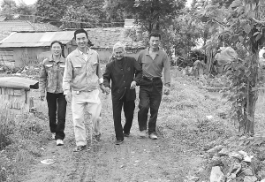 刘慧珍老人带记者参观小儿子家时,两个儿子搀扶着自己的母亲。去年5月16日,在遵道镇高安村,记者拍下了手捧“谢”字的老大娘的照片(小图),在过去一年里被电视、报纸、杂志等各类媒体反复使用。照片中的老大娘刘慧珍80岁。老人今年3月3日就已经搬到了土门镇团结村,和两个儿子住在一起。
