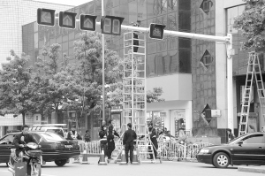 昨天,在周口市区七一路与中州路交叉路口,技术人员正对红绿灯系统进行升级改造。升级后,该系统能根据各路口每个车道汽车的数量确定绿灯放行时间的长短,改变了之前无论路口车多车少、有车无车,红绿灯的时间都固定不变的情况。据了解,这次升级的有迎宾大道、邦杰路、中州南路、七一路等主干道路口的红绿灯。晚报记者 朱海龙 摄