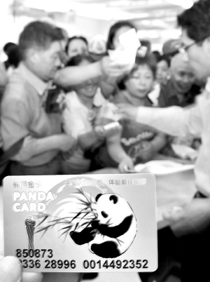 5月12日,上海市民在领取“熊猫金卡”。当日,由成都市政府主办的“关爱天府成都 体验最佳旅游”——“熊猫金卡”发放活动在上海举行,共计60万张“熊猫金卡”向上海市民现场发放。根据“熊猫金卡”的使用规则,凡持“熊猫金卡”的上海游客可于今年12月31日前,免费畅游都江堰、青城山等11个景点,市民只需付1元钱的制卡工本费。新华社发