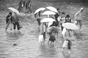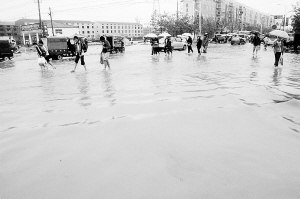 5月15日,淮阳县普降大雨,该县西城区新民路、教育路部分路段由于下水道堵塞,排水不畅,造成道路及附近小区严重积水,给学生出入校园及市民出行带来极大不便。