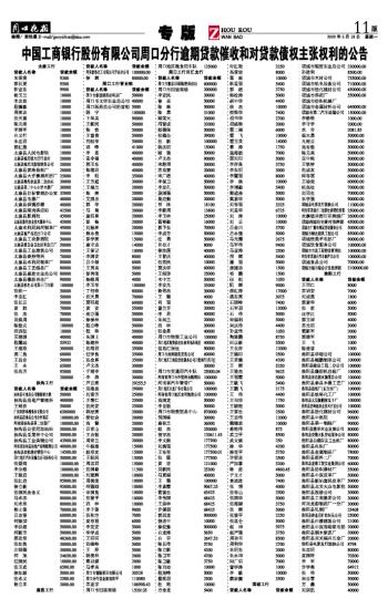 中国工商银行股份有限公司周口分行逾期贷款催收和对贷款债权主张权利的公告