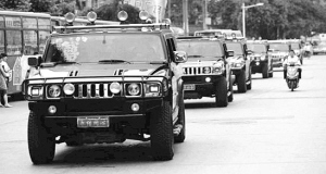 “我在这里值班三四年了,第一次看到这么豪华的婚车车队。”17日上午,成都市文明交通劝导队三中队值勤员黄长金一脸兴奋,“以前看到的宝马车队都变得普通了!”他说,上午9时左右,他正在值勤,突然看到的一幕让他不由得睁大了眼睛:迎面驶来10余辆黑色悍马车,车窗玻璃上都贴着硕大的“喜”字。“这么多气派的悍马,居然都来当婚车!”近百名群众纷纷围拢过来,争相目睹这个悍马婚车队。
