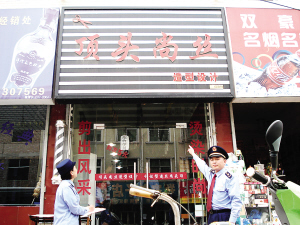 随后,工商执法人员对该理发店下达了责令整改通知书,限期2天改名。店老板表示立即拆除牌匾,更改店名。