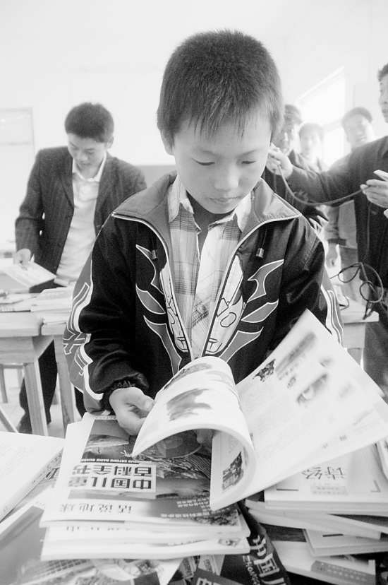 “农家书屋” 昨天上午,淮阳县许湾乡邓楼行政村不少村民在村文化大院的“农家书屋”里阅读图书,享受“精神食粮”。据了解,目前该县19个乡镇、39个行政村的试点“农家书屋”落成。每个书屋选配1500多册图书、100种光盘、30种报刊。 晚报记者 杜欣 摄
