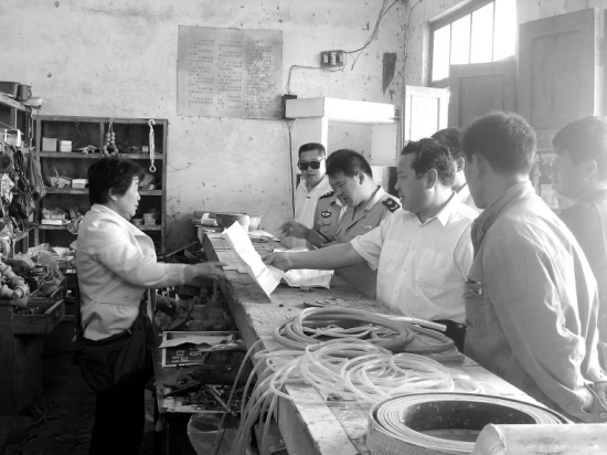 5月19日,西华县商务局、工商局、公安局、安监局组成联合执法组,对全县农用柴油销售网点进行拉网式检查,对存在安全隐患或无证经营等商户进行取缔或要求其限期整改。图为检查人员在田口乡一销售网点检查时的情景。 晚报记者 高洪驰 摄