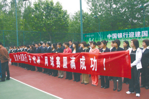 网球是一项体育运动,也是一种文化。在现代快节奏的生活方式中,网球过多地成了人们休闲中相互交流的一种手段。人们不仅享受了运动带来的快乐,更达到了社交目的。这就是文化内涵的能量。当然,只有当它的运动属性和社交目的相结合时,它内部的这种能量方能充分释放,从而聚合更多的社会资源。中国银行周口分行迎建国60周年“中银杯”网球邀请赛让喜欢网球的人走到一起,交流切磋技艺的同时,品味网球运动带来的快乐,也享受中行周口分行给人们的生活带来的便利。