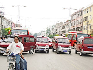当日下午,记者来到长平路西段,只见这里聚集着多家饭店和旅社,车流、人流量较大;8辆客车停在快车道和人行道上,大部分是发往艾岗乡的班车。17时许,一辆从艾岗返回的班车刚一停在大街上,立即围上来几辆城市公交车抢客人,路面很快拥挤起来。