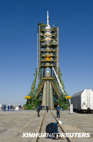 5月25日,俄罗斯“联盟TMA-15”载人飞船矗立在哈萨克斯坦的拜科努尔航天发射场。按计划,国际空间站第20长期考察组成员将于5月27日乘坐俄“联盟TMA-15”载人飞船奔赴国际空间站。
