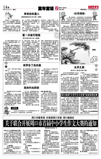 周口晚报“小学作文大讲堂”走进校园启事