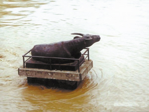 周口铁水牛初置时是作为颍河水位涨落、汛期报警的标志,一百多年来,群众中一直流传着“水牛喝水,上游决堤”的说法,且每每应验,已是周家口三岸人民镇冲、安澜的精神寄托,铁水牛也因此闻名遐迩,倍受关注。