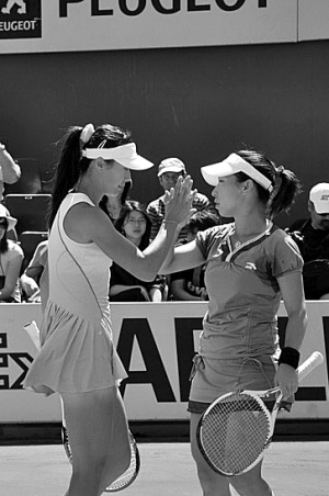本报综合消息 北京时间5月31日,2009年度法国网球公开赛继续进行第8比赛日的争夺全面打响。在1号球场率先进行的一场女双16强战中,16号种子中国金花组合郑洁/晏紫6比4、7比5完胜赛会4号种子澳洲组合斯托瑟/斯塔布斯组合,强势杀入本届法网的女双8强。