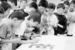 昨日,周口市交警支队的干警来到周口七一路二小举办了“拒绝交通违法,争做文明小使者”活动。同学们纷纷签名,争做文明小使者。实习生 李鑫 摄