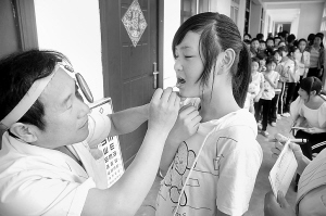 “六一”来临之际,淮阳县妇联带着招募的“爱心家长”来到赵玲艺术学校,与这里的50名孤儿一起欢度节日。县妇幼保健院医务人员还为孩子们进行了视力检测、抽血化验等多项义诊。晚报记者 杜欣 摄