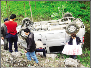 本报讯 5月27日凌晨4时左右,西华县李某驾面包车在周西公路由北向南行至康楼南200米处时,一辆轿车亮着刺眼的车灯迎面而来,他急忙向右打方向盘,没想到方向盘打得太急,面包车一下子冲进路边4米多深的路沟,翻个底朝天(如图)。所幸李先生并无大碍。
