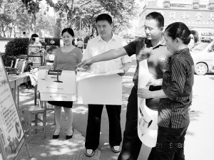本报讯 5月31日8时许,市疾病预防控制中心设在周口人民商场门前的咨询台前围满了前来咨询的市民,医务人员边发传单、边解答市民提出的抽烟对身体造成各种危害等问题。