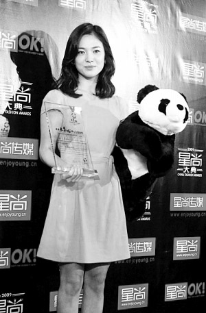 本报综合消息 周迅头顶“蛋糕”、宋慧乔抱“熊猫”……5日晚,2009年星尚大典在北京举行。近来致力于环保的周迅将以前穿过的衣服重新搭配,戴着无纺布做的蛋糕帽亮相,因为和姚明一起压轴出场,周迅笑称自己就算再戴高帽,看起来也不过就是《指环王》中的霍比特人。韩国女星宋慧乔获得“熊猫爱心大使”的称号,抱着熊猫玩偶出场的她透露,自己前往四川看熊猫时,还曾被熊猫抓伤过。(赵亢)