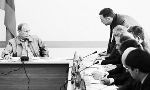 普京(左)在现场办公会上怒斥德里帕斯卡(右边站立者)