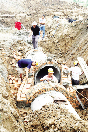昨日上午9时许,记者在市区西大街与汉阳路交叉口看到,施工现场一片忙碌景象,管理和技术人员不停穿梭,有条不紊地指挥着开挖路面、运卸材料、回填土方、铺设管道等工作,场地周围也挤满了关心工程进展的附近群众。“以前我们住的这片地方下点雨就涝,被戏称是城区的‘锅底子’,群众出行苦得很,汛期就跟趟着小河回家似的。修好后,俺们就再也不怕了。”西大街居民李女士高兴地告诉记者。在芙蓉南路到滨河路河堤的一段约50米长的工地上,施工人员正在加紧预制交换井。“芙蓉路南头这段工程基本完成了,就差与西大坑管道对接了。”一名工地负责人说。