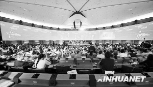 6月7日,在比利时首都布鲁塞尔的欧洲议会大厦内,第七届欧洲议会选举的初步结果在大屏幕上显示。当天,第七届欧洲议会选举在欧盟27个成员国全部完成投票。据初步统计结果显示,右翼的人民党党团在本次议会选举中获胜。赵毅 摄