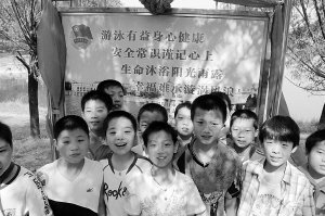 上图:孩子们在警示牌前合影