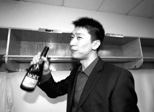 尽管没得到出场机会,但身为湖人的一员,孙悦的心情很兴奋。在更衣室里,他拿着香槟狂饮,并向杰克逊喷洒香槟。“能享受夺冠的幸福感是很不容易的事情。这个赛季,我从科比等队友身上学到了很多东西,我能感觉到自己在一天天提高。”孙悦说。