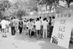 昨天,川汇区武装部会同教育、卫生等部门,率先在全市范围内开展了应届大学毕业生预征对象兵役登记活动。他们先后来到周口师范学院、周口职业技术学院等高校内,向即将走出校门的大学毕业生们宣传兵役改革制度,受到广大学生的热烈欢迎(如图)。