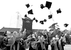 6月18日,南京大学的一些应届博士毕业生在毕业典礼后把博士帽抛向天空。当日,南京大学举行2009年应届毕业生的首场毕业典礼,为所有博士毕业生以及部分硕士生和本科生颁发了学位证书。新华社发