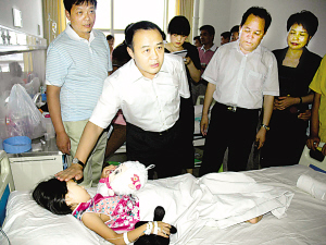 毛超峰又来到市妇幼保健院,这里没有住院患儿,都是留观病例。毛超峰详细询问医院6月19日以来的救治工作,并向随行的市实验幼儿园园长王凤兰了解中毒患儿总体情况。他痛心地说,食品卫生安全尤其是学校食品卫生安全一直是老百姓最关心的事,一定要吸取教训,加强学校卫生管理,把食品卫生安全放到学校工作的第一位。毛超峰要求尽快在全市范围内进行一次学校食品卫生安全检查,同时要求在全力以赴治疗中毒幼儿的基础上,加快事故原因调查,给社会一个交代,给群众一个交代。
