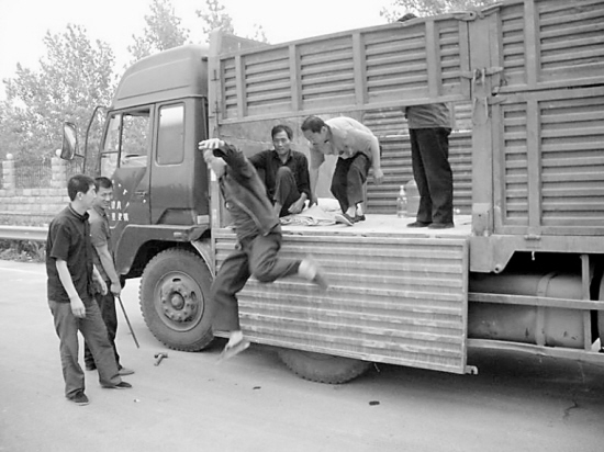 6月20日16时许,在大广高速扶沟收费站,一辆车牌号为豫K307的东风牌大货车,拒不接受民警例行检查,加大马力企图逃跑。民警追上盘查发现,这辆大货车违法载客11人。这11人说,他们每人向司机交了100元车费。 本着以人为本的原则,民警给11人找了一辆客车送他们回乡,并对该车给予相应处罚。 晚报记者 陈永团 文/图 线索提供 李 慧