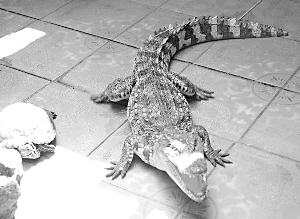 “这儿有条鳄鱼,这儿有条鳄鱼!”梁先生一边进屋找绳子,一边冲邻居喊了起来,不一会院内便挤满了看热闹的人。