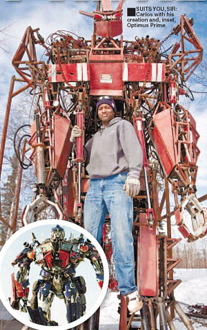 从2005年开始,卡洛斯正式将自己的理想付诸实施。令人惊讶的是,卡洛斯历时4年时间、花费1.5万英镑,日前竟真的在自己家的花园中打造出了一个真实版的变形金刚!