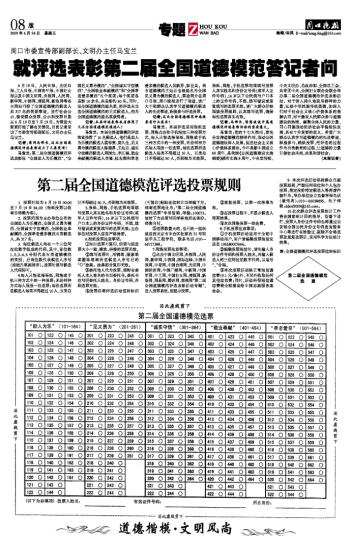 就评选表彰第二届全国道德模范答记者问