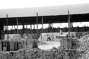 在坎坷的土路上又前行约1公里,记者看到了一个高高竖立的烟筒。“就是这个砖厂。”李志国说。记者走近前看到,一个露天砖厂正在生产中,刚烧好的砖块正在往外运。记者问谁是负责人,正在干活的工人连连摇头说“不知道”。