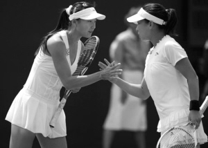 本报综合消息 北京时间6月25日,2009温布尔登网球公开赛女子双打展开首轮争夺,赛会13号种子、金花组合郑洁/晏紫仅耗时57分钟便以两个6比1的比分横扫日本组合森上亚希子/森田步美轻松挺进女双第二轮。