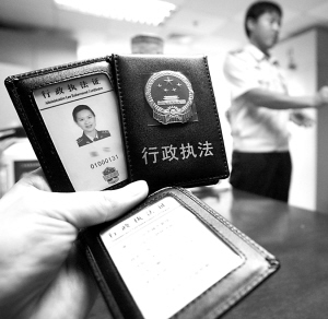 6月30日,城管人员展示新式执法证件。7月1日起,北京市城管执法系统5000余名执法人员将正式使用新式行政执法证件。新式行政执法证内置了芯片,记录执法人员基本信息和证件年审信息。 新华社发