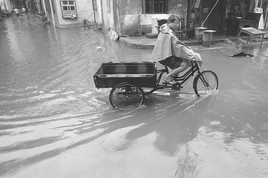6月29日,武汉降雨后,市民在街头积水中骑行。6月28日,湖北省进入梅雨期,当地气象部门发布暴雨黄色预警信号。截至目前,湖北省已有32个县市遭遇暴雨袭击,近百座水库超过汛限水位。新华社发